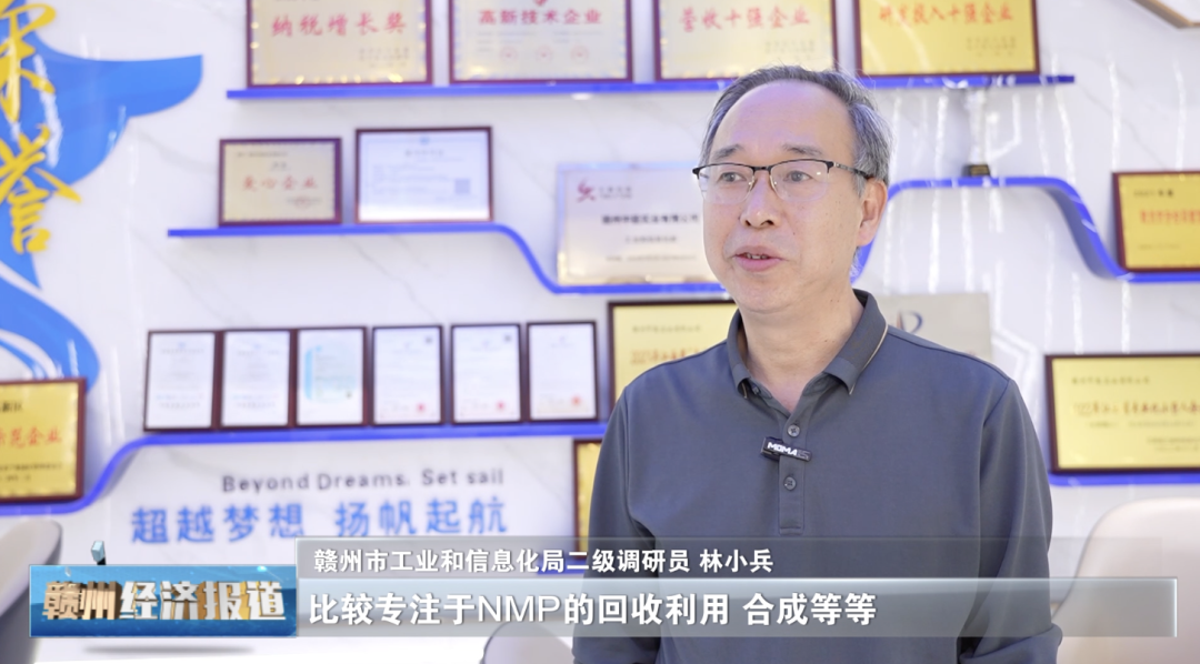 Zhongneng Industry is a company that focuses on the recycling, utilization and synthesis of NMP. It focuses on this field but is not limited to this field. The NMP industry started when our new energy batteries were developing rapidly, and it actually has a good prospect. Zhongneng Industry's products are also an indispensable organic solvent in the manufacture of our new energy batteries and lithium batteries. Its (NMP) synthesis has indeed filled the gap in Ganzhou's industrial chain.